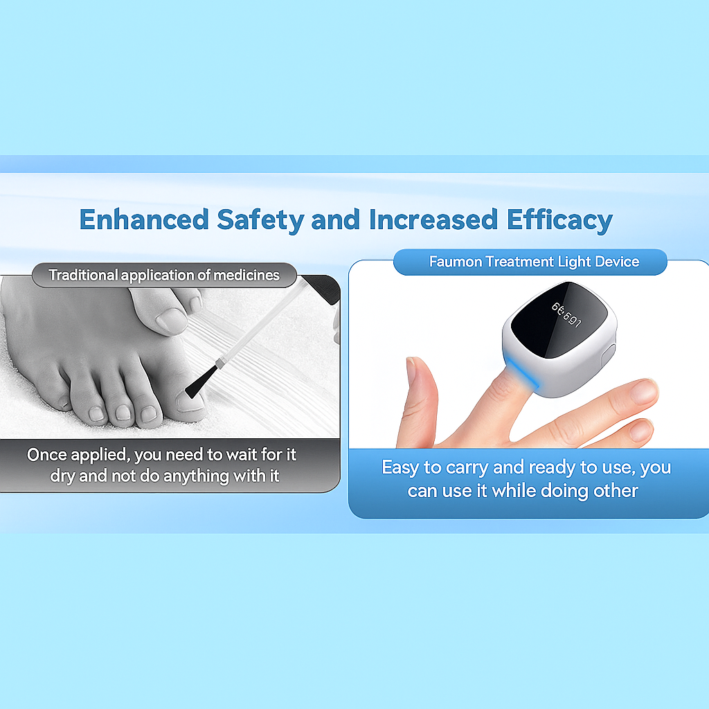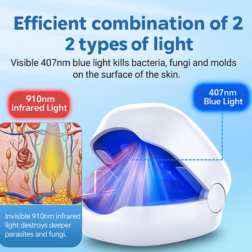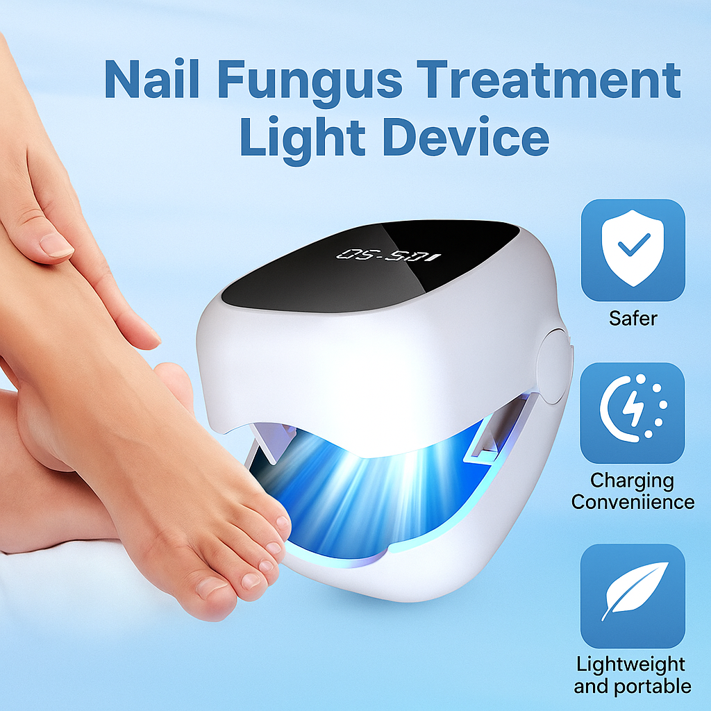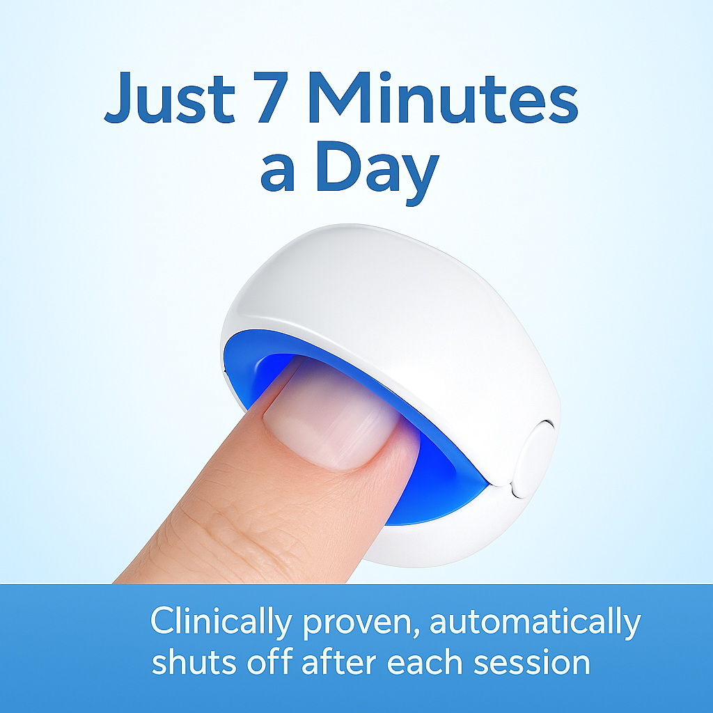 No — the device is completely safe and painless. It uses gentle blue and infrared light to kill fungus without chemicals or side effects.